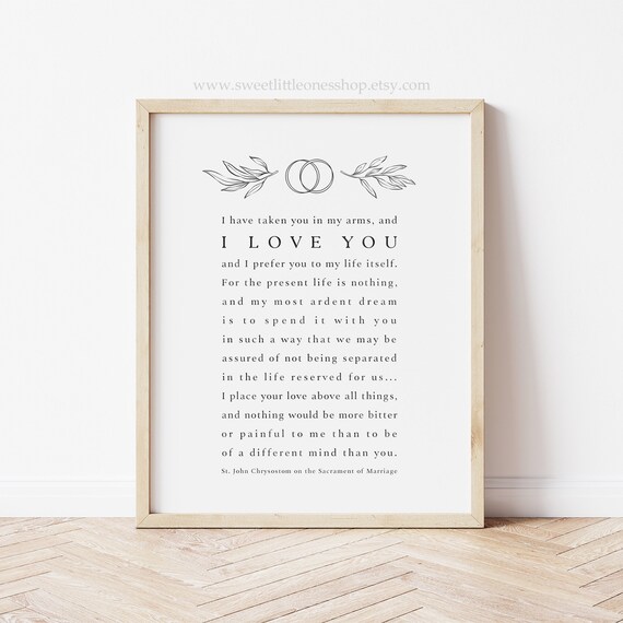 Sacrament of Marriage St John Chrysostom Quote Printable Wall Art Catholic Love Marriage Print Catholic Home Decor Catholic Anniversary Gift. The husband giving orders and the wife obeying. St john chrysostom quotes on marriage.